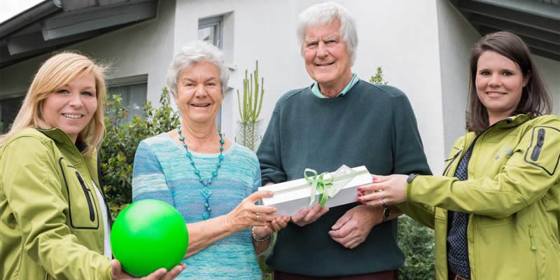 Übergabe der Apple Watch an die glücklichen Gewinner. V.l.n.r: Nadine Maier, Ehepaar Ruckenbrod, Denise Flaig